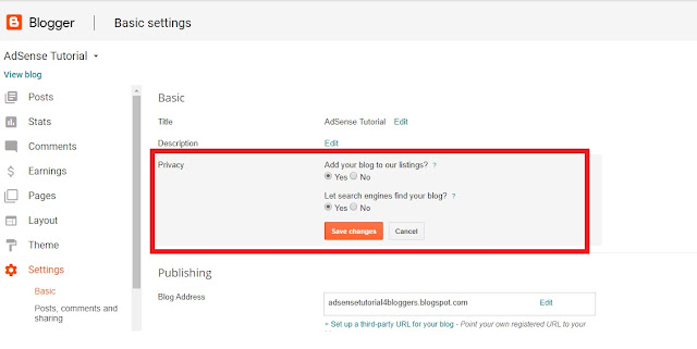 Now the next step is to go on settings >> Here we have to add few main keywords which belongs to your blog’s specific niche. It will help you to make your blog SEO friendly. It will also help you to get your blog searchable on the Internet. You can also say this is the main step for your blog. so do not forget it.